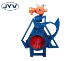 結(jié)構(gòu)特點 :氣動扇形盲板閥主 要由左閥體、右閥體、絲杠副、閥板、密封圈、杠桿、氣缸等零件組成,并由底座、支撐柱構(gòu)成一個剛性結(jié)構(gòu)體。閥門中設(shè)有夾緊、松開氣缸和翻板氣缸,夾緊、松 開氣缸通過杠桿副和絲桿螺旋副驅(qū)動左、右閥體完成松開、夾緊動作,翻板氣缸驅(qū)動閥板完成開關(guān)動作。橡膠密封圈鑲嵌在閥板上,具有耐溫高、密封性能好、更換 方便、使用壽命長等特點。
